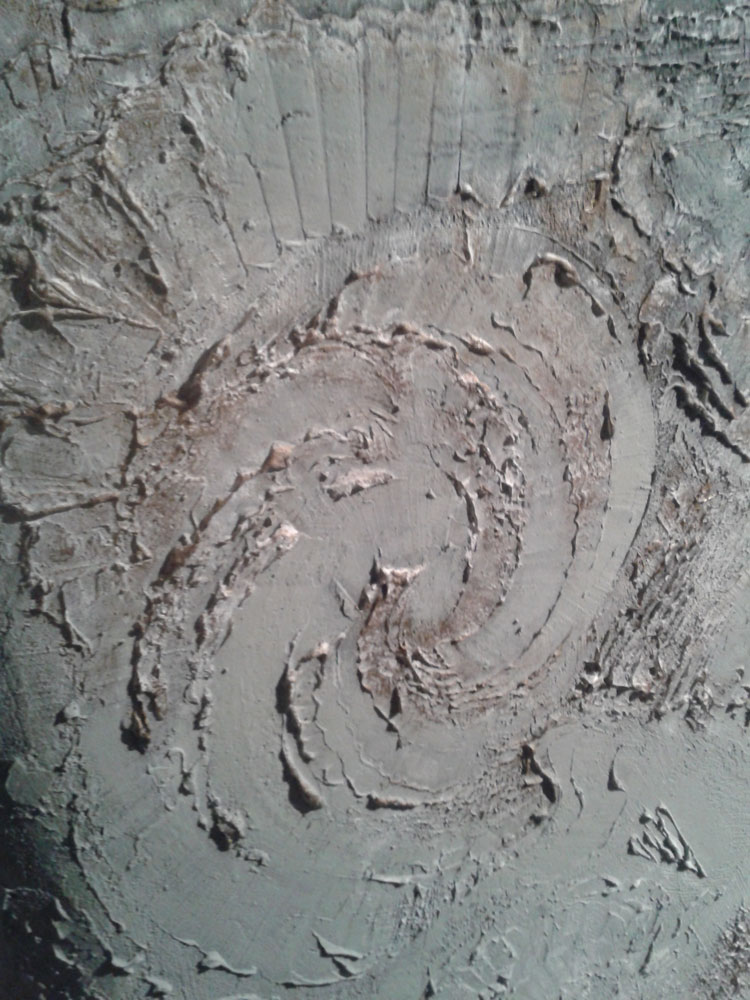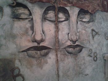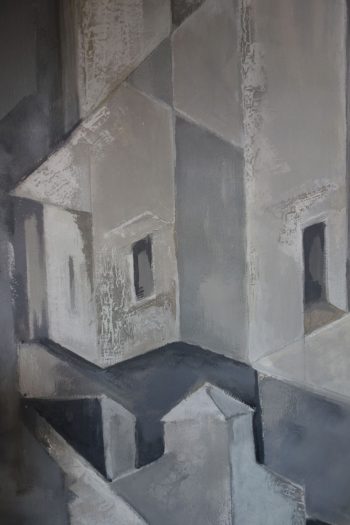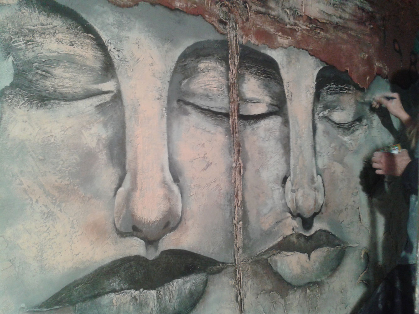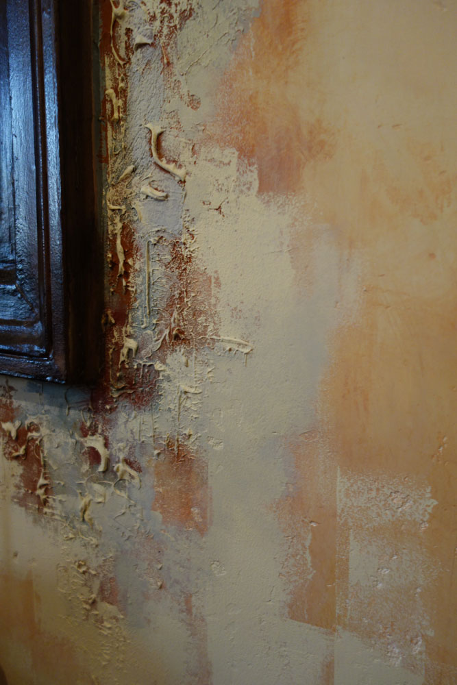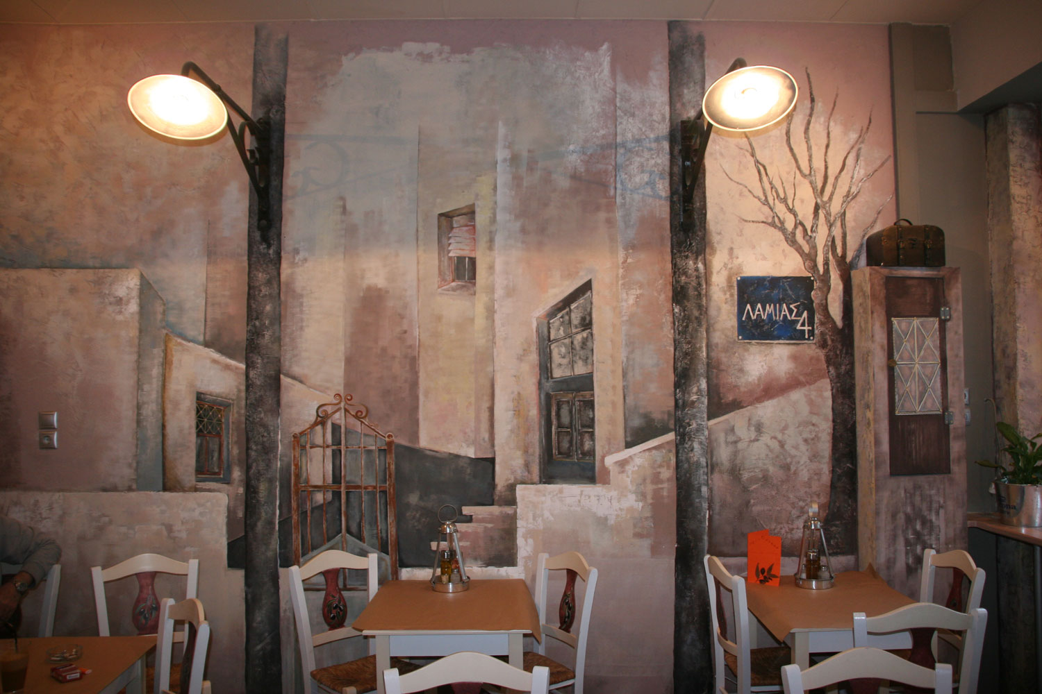 Οι τοιχογραφίες προέκυψαν από μια φανταστική συνομιλία ανάμεσα στο παγωμένο υλικό ενός τοίχου και στη διαρκώς διαφοροποιούμενη πατίνα του χρόνου. Ο τοίχος στατικός και άψυχος καμβάς, δέχεται τη δημιουργική δράση, που διαρκώς εξελίσσεται και επαναπροσδιορίζεται ανάλογα με τις συνθήκες και το απρόβλεπτο του καιρού. Η τεχνική του ανάγλυφου με στόκο κόλλα και ακρυλικά, επιτρέπει τη προσωπική μου εικαστική παρέμβαση, είτε ζωγραφικά είτε αφηρημένα, ανοίγοντάς μου το δρόμο για μελέτη και απεικόνιση της διαδικασίας.