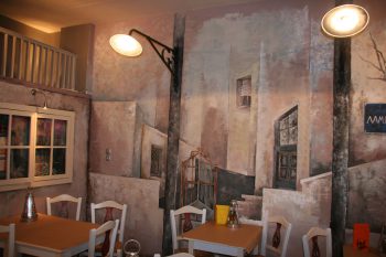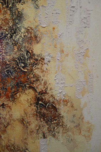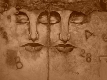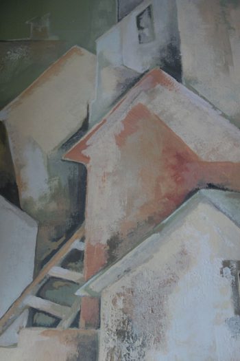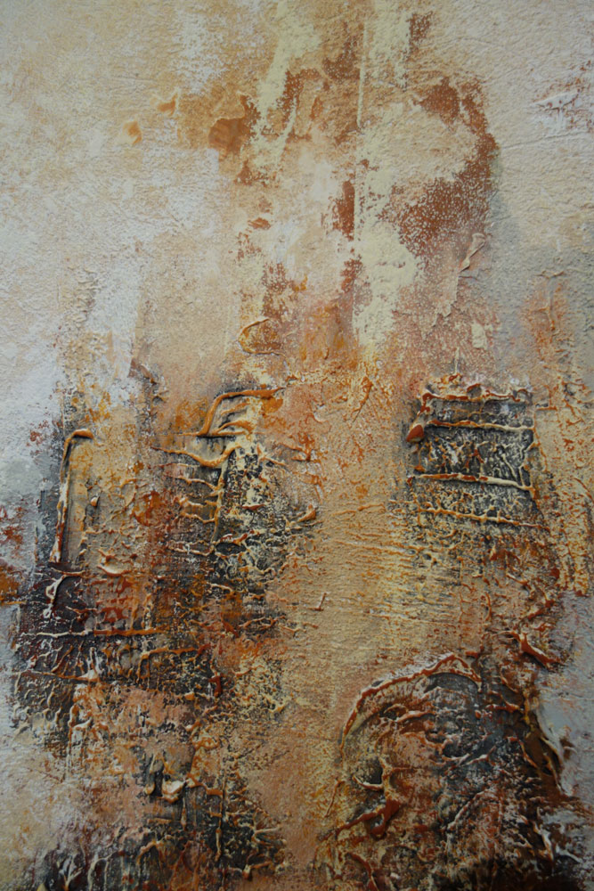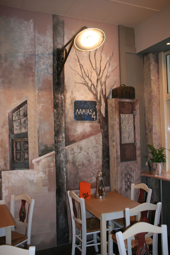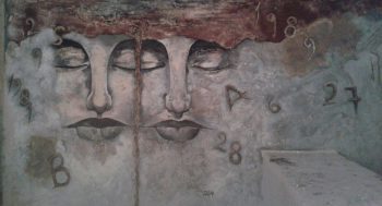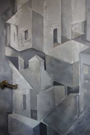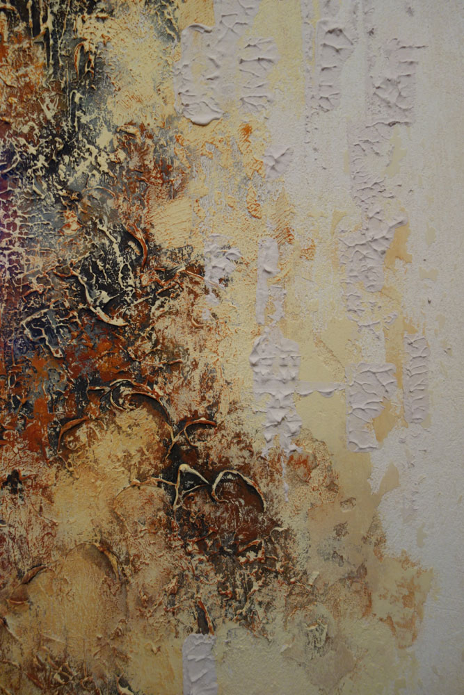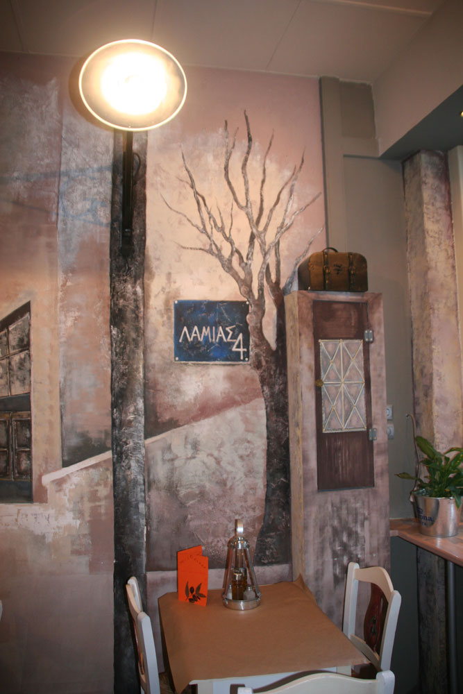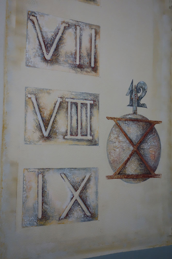 Οι τοιχογραφίες προέκυψαν από μια φανταστική συνομιλία ανάμεσα στο παγωμένο υλικό ενός τοίχου και στη διαρκώς διαφοροποιούμενη πατίνα του χρόνου. Ο τοίχος στατικός και άψυχος καμβάς, δέχεται τη δημιουργική δράση, που διαρκώς εξελίσσεται και επαναπροσδιορίζεται ανάλογα με τις συνθήκες και το απρόβλεπτο του καιρού. Η τεχνική του ανάγλυφου με στόκο κόλλα και ακρυλικά, επιτρέπει τη προσωπική μου εικαστική παρέμβαση, είτε ζωγραφικά είτε αφηρημένα, ανοίγοντάς μου το δρόμο για μελέτη και απεικόνιση της διαδικασίας.